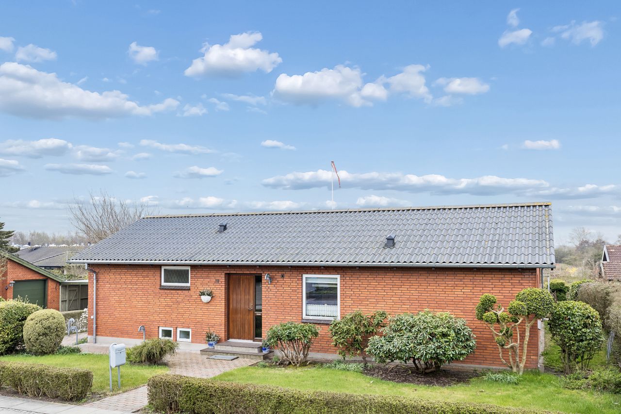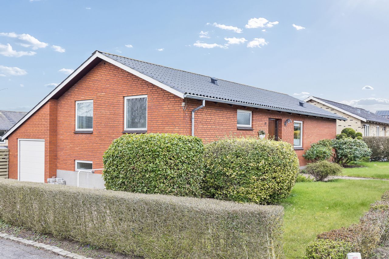 På Færøvej i Middelfart – lige i smørhullet mellem gymnasiet, idrætsanlægget og hospitalet – finder du denne nydelige rødstensvilla med tilhørende solrig have orienteret mod syd. Huset byder på en god indretning med tre værelser og store opholdsrum samt en anvendelig kælder, der giver 160 m2 hus i alt. Dertil kommer en integreret garage på 20 m2.