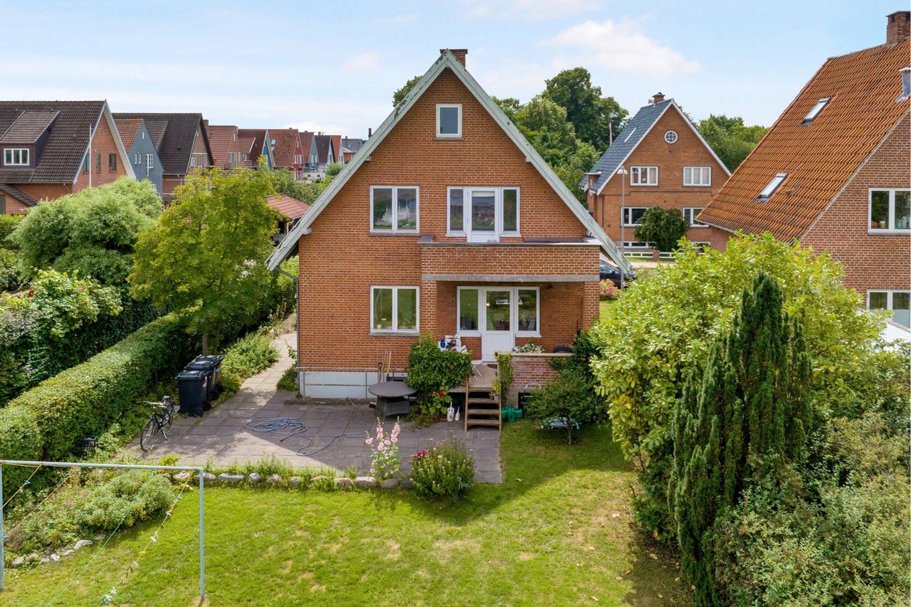 Odenses attraktive Skibhuskvarter. Villalejligheden er yderst velholdt og byder på solrige, flot blomstrende udearealer.
