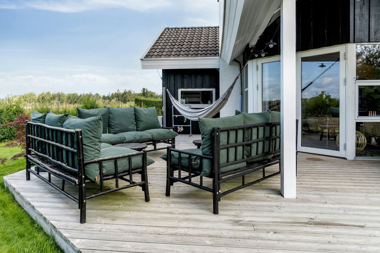 Når den står på afslapning hjemme i sommerhuset, er der god mulighed for at få pulsen helt ned. Huset ligger helt rigtigt på grunden, så I kan nyde udsigten over det åbne landskab, og solens bane følger terrassen, så man kan altid finde et sted med sol. Grundens størrelse efterlader i øvrigt rigeligt plads til fodboldturneringer, partytelt eller lignende. Ideelt til udlejning med ikke mindre end 10 sovepladser.