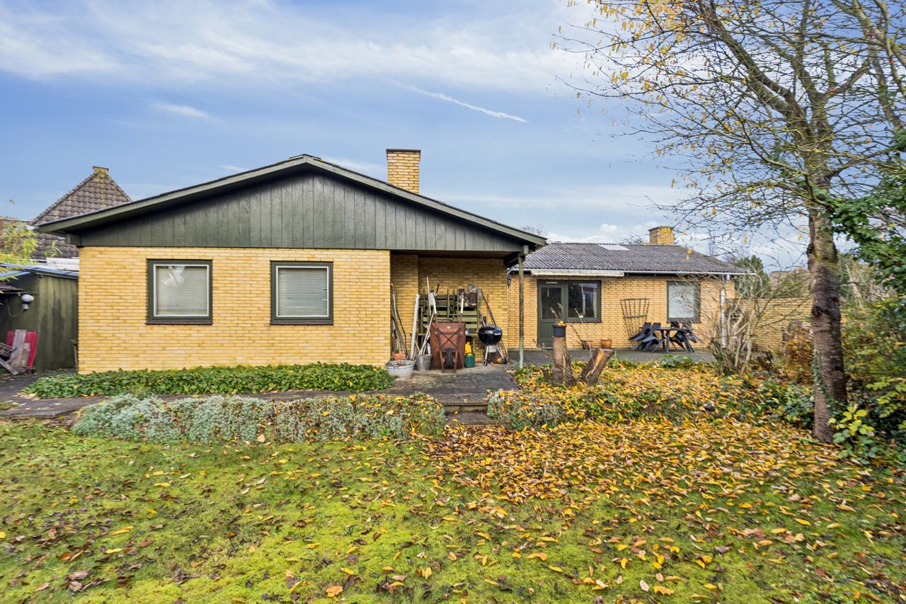 Der er tale om et parcelhus er opført i 1961 med gule murstensfacader og grønmalede vinduer og træværk. Også indenfor er der også masser af træ og andre originale materialer, og det giver dig som køber en sjælden mulighed for enten at restaurere og give den gennemførte 60’er-stil et frisk pust eller nytænke stil og indretning og skabe en moderne bolig. De i alt 166 m2 i ét plan gør huset let at opdatere og indrette efter nutidens behov.